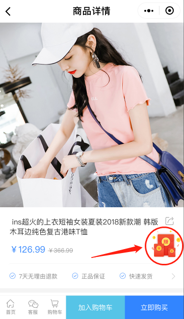 b.在參與推廣活動(dòng)的產(chǎn)品的產(chǎn)品詳情頁點(diǎn)擊“賺”的標(biāo)識(shí),將產(chǎn)品分享給好友或朋友圈。